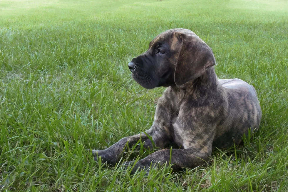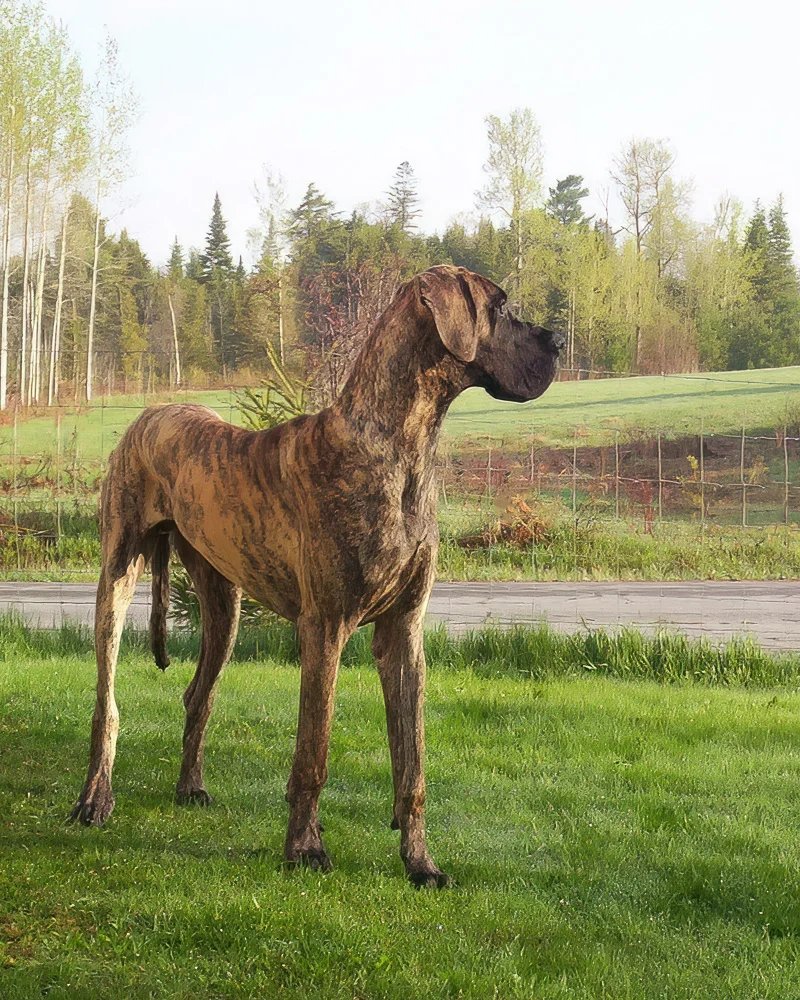 The first six months of Elliott’s life were remarkable. He went from 1.6 pounds (725 g) at birth to 100 pounds (45 kg) and 31 inches (79 cm) in just 26 weeks. Elliott excelled at obedience and was a happy, comical puppy. Although he had always drawn a crowd wherever he went, the attention Elliott garnered grew as fast as he did. People were mesmerized by his markings and amazed by his height. Elliott was a statuesque beauty. His elegant neck, rich colour, thoughtful expression, and gorgeous contours made him a joy to watch and a treat to photograph.