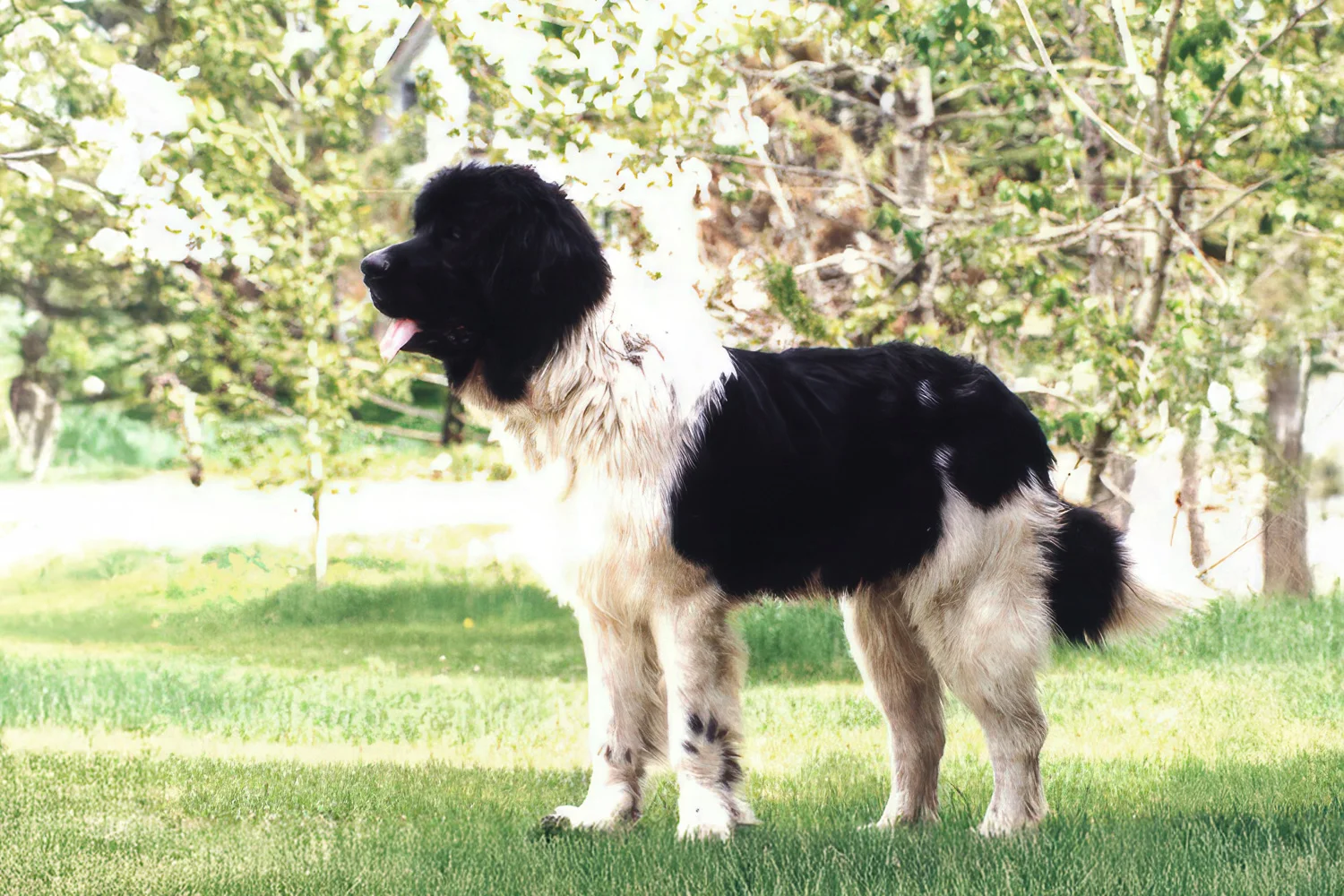 During Webster’s first summer with us, we had the opportunity to rescue five orphaned kittens. They were three weeks old, and Webster immediately fell in love with them. It was heart-warming to watch 150 pounds playing gently with two pounds. It wasn’t uncommon to find Webster strutting about with a kitten or two hanging on for dear life. He would scoop wayward kitties out of his food bowl, carefully placing the infants out of harm’s way before resuming his meal. Each night his newborn charges would line up in a row, nuzzling into the fur on his tail, rooting for non-existent teats. Webster was an exemplary surrogate father, and the kittens adored him.